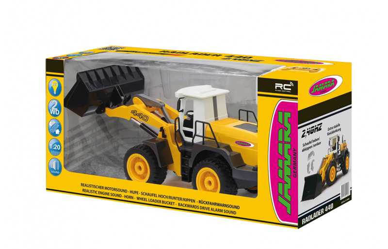 Το Jamara Radlader 440 1:20 είναι ένα τηλεκατευθυνόμενο φορτωτής υψηλής ποιότητας που προσφέρει συναρπαστικό παιχνίδι εκτός δρόμου. Στην κλίμακα 1:20, το μοντέλο αναπαριστά με πιστότητα τις γραμμές και τη λειτουργικότητα ενός πραγματικού φορτωτή, με ικανότητα να ανυψώνει και να μετακινεί υλικά όπως άμμος, χώμα ή μικρά αντικείμενα μέσα στον κάδο του.