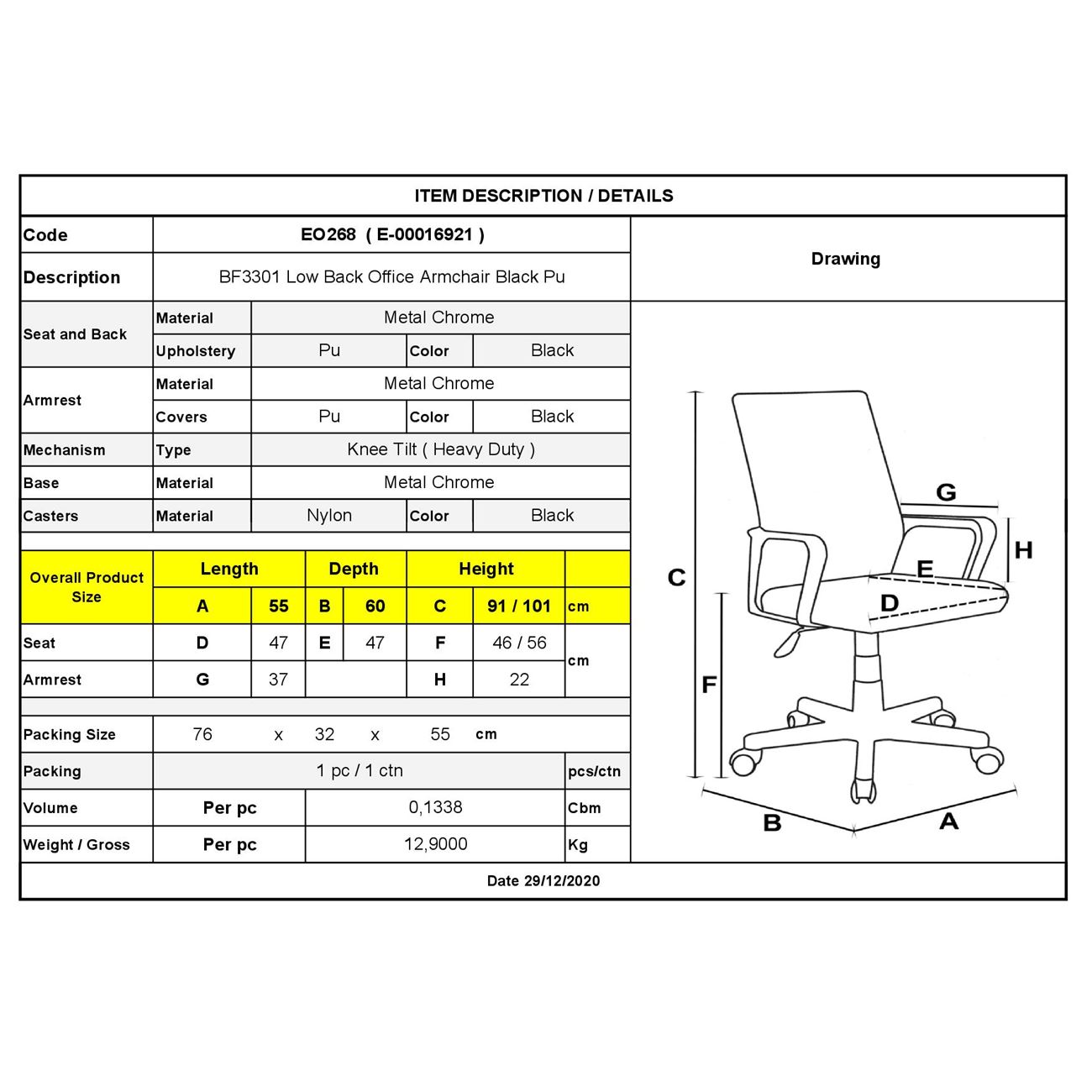BF3301 Πολυθρόνα Γραφείου Εργασίας - Χαμηλή πλάτη