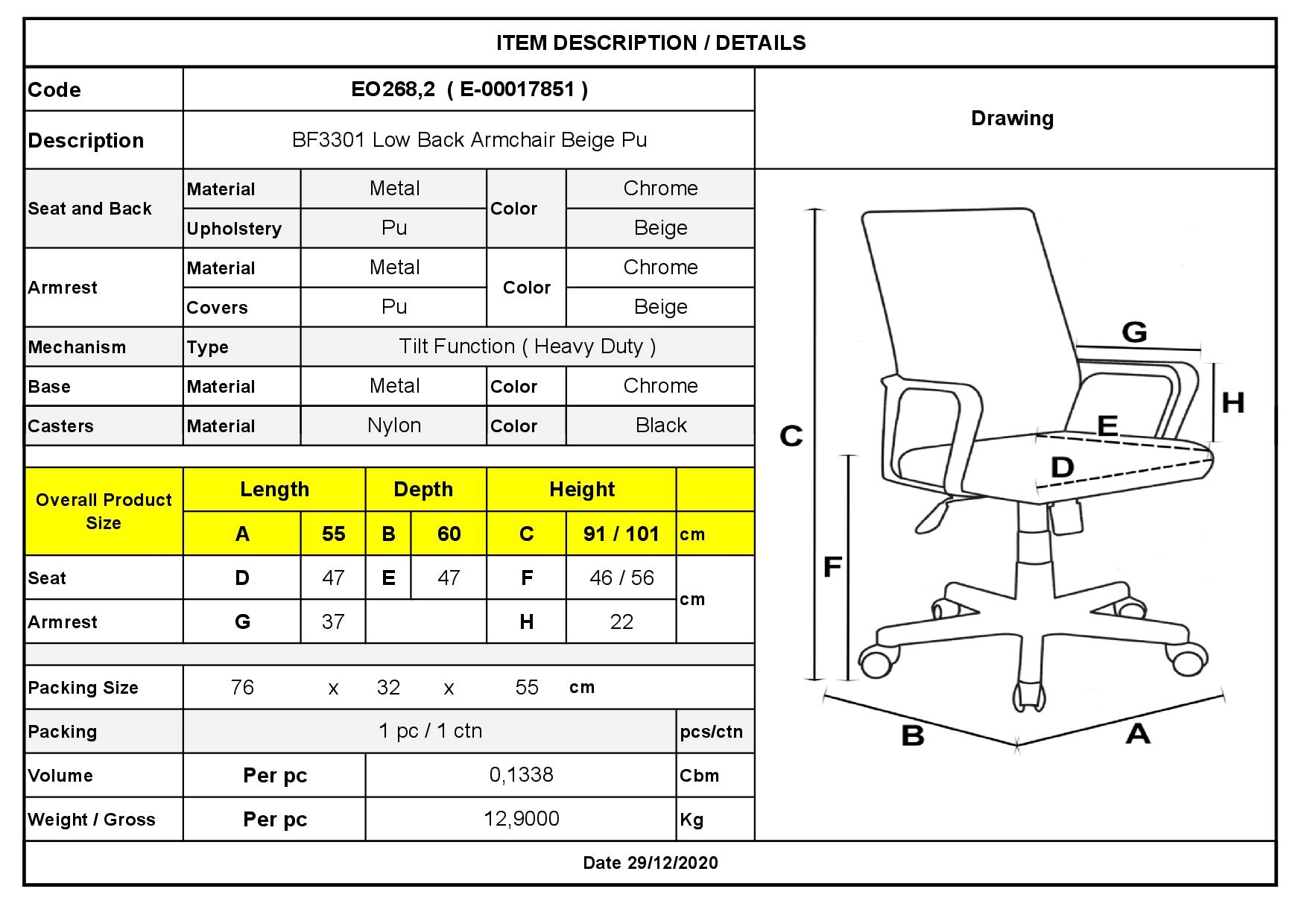 Woodwell BF3301 Πολυθρόνα Γραφείου Μέταλλο Βάση Χρώμιο, PU Μπεζ Ε-00017851 ΕΟ268,2
