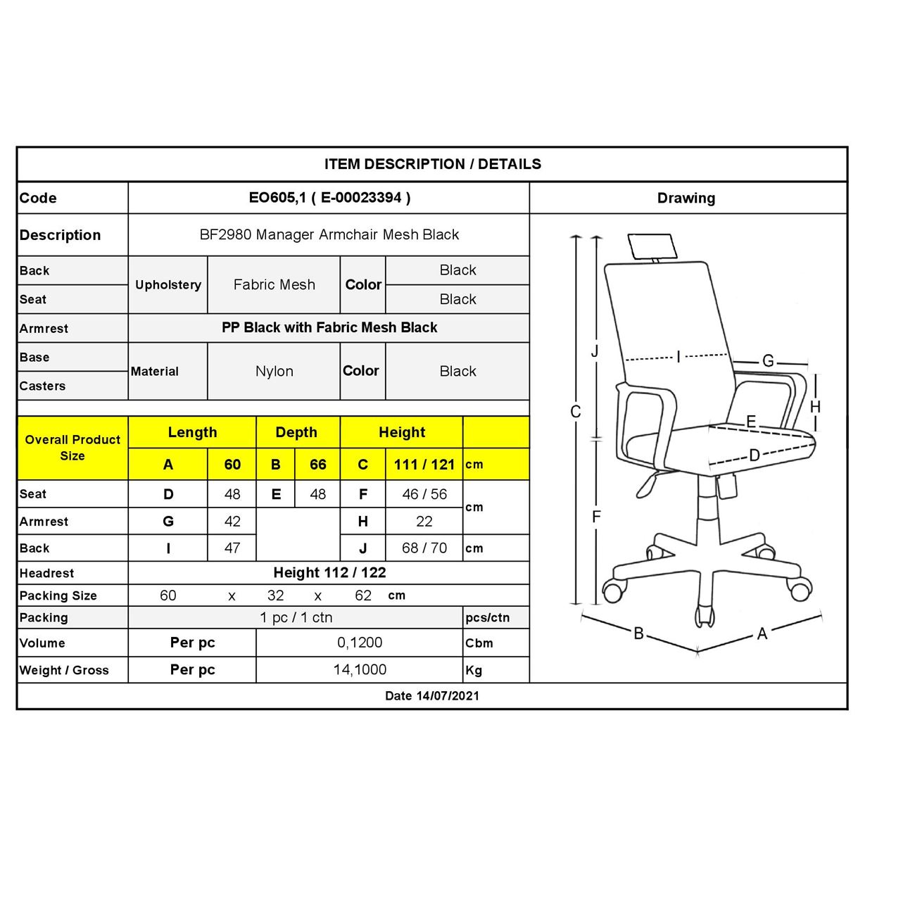 ΕΟ605,1 BF2980 Πολυθρόνα Διευθυντή Mesh Μαύρο