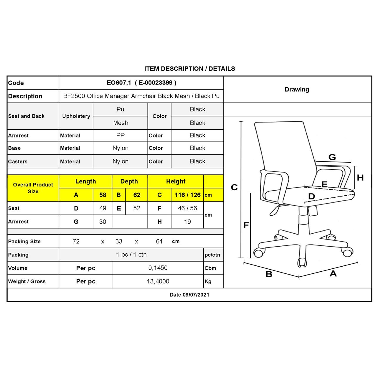 ΕΟ607,1 BF2500 Πολυθρόνα Διευθυντή Mesh Μαύρο-Pu Μαύρο