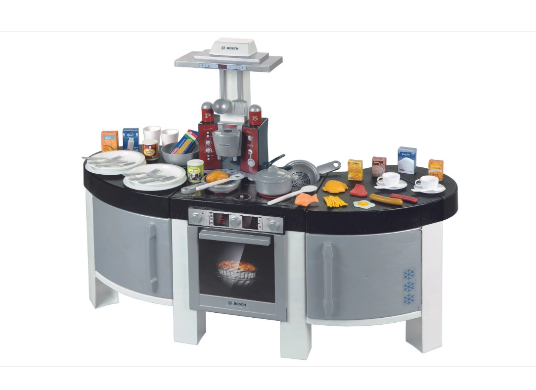 The Bosch Kitchen "vision" by Theo Klein provides lots of fun for little chefs. With sink, stove, oven, refrigerator and microwave, many game possibilities. For this, the play kitchen provides a luminous flame, noise and lots of accessories.