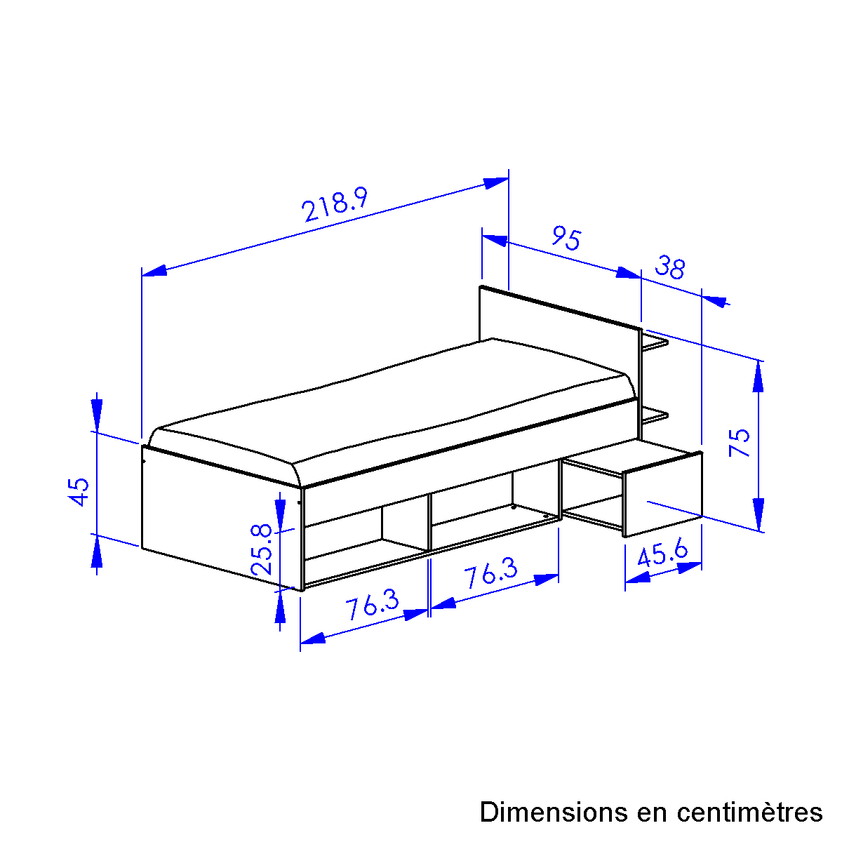 Το κρεβάτι Ergo είναι όμορφο και πρακτικό.  Οι διαστάσεις του είναι 132/95x219εκ. ( ύψος 75εκ. ) .  Διαθέτει 2 ράφια πίσω από το κεφαλάρι και ανοιχτούς αποθηκευτικούς χώρους στα πλαινά. Διαθέτει επίσης και μια κινητή μονάδα που μπορεί να χρησιμεύσει και ως κομοδίνο ( μπορεί να μπει είτε δεξιά είτε αριστερά ).Το μονό κρεβάτι Ergo είναι γαλλικής κατασκευής.