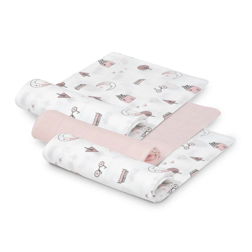 Interbaby Πάνες Αγκαλιάς Bamboo 55×70 Σετ 3 Τεμ Pink 98976-02