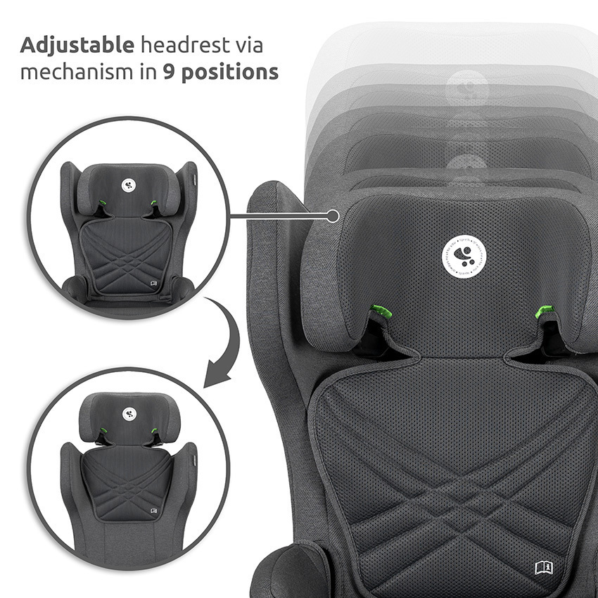 Το ρυθμιζόμενο προσκέφαλο επιτρέπει την προσαρμογή του καθίσματος στο ύψος του παιδιού καθώς μεγαλώνει, προσφέροντας σωστή εργονομία και άνεση. Παράλληλα, η ενισχυμένη πλευρική προστασία βοηθά στην απορρόφηση ενέργειας σε περίπτωση πλευρικής σύγκρουσης.